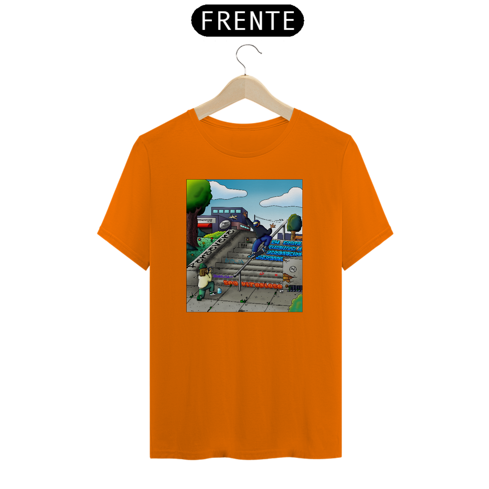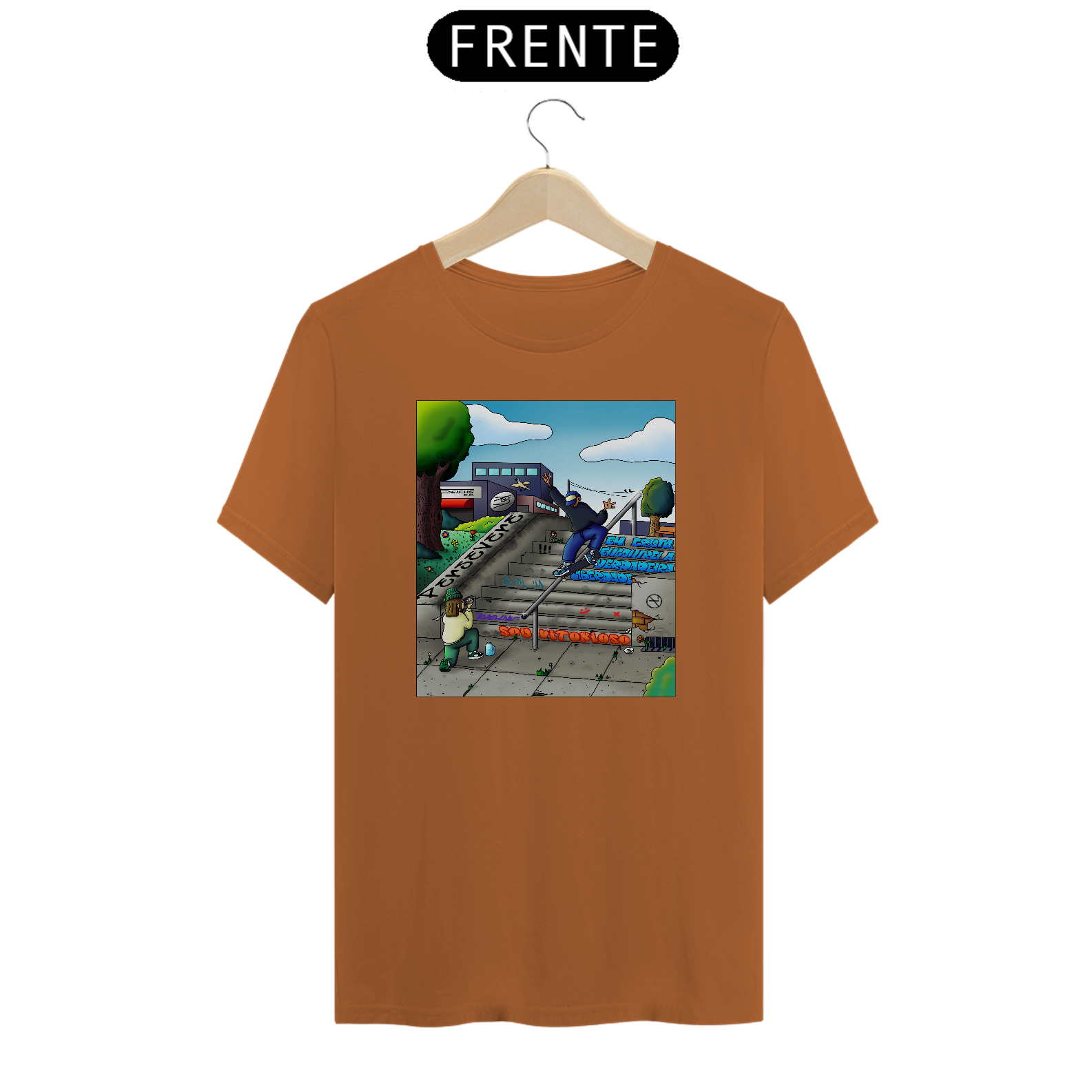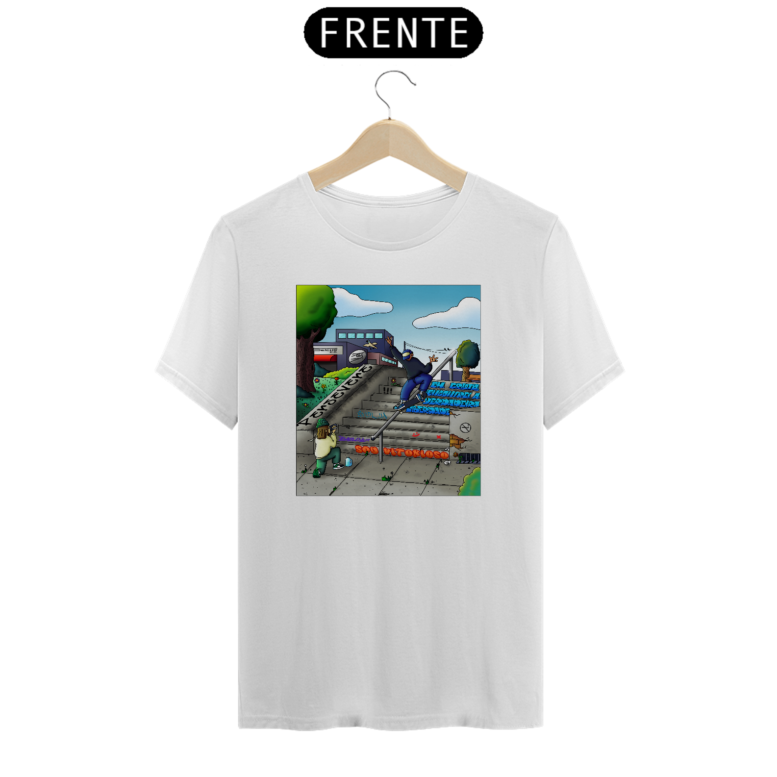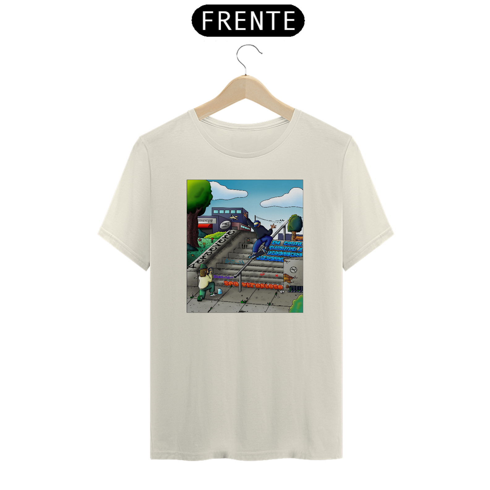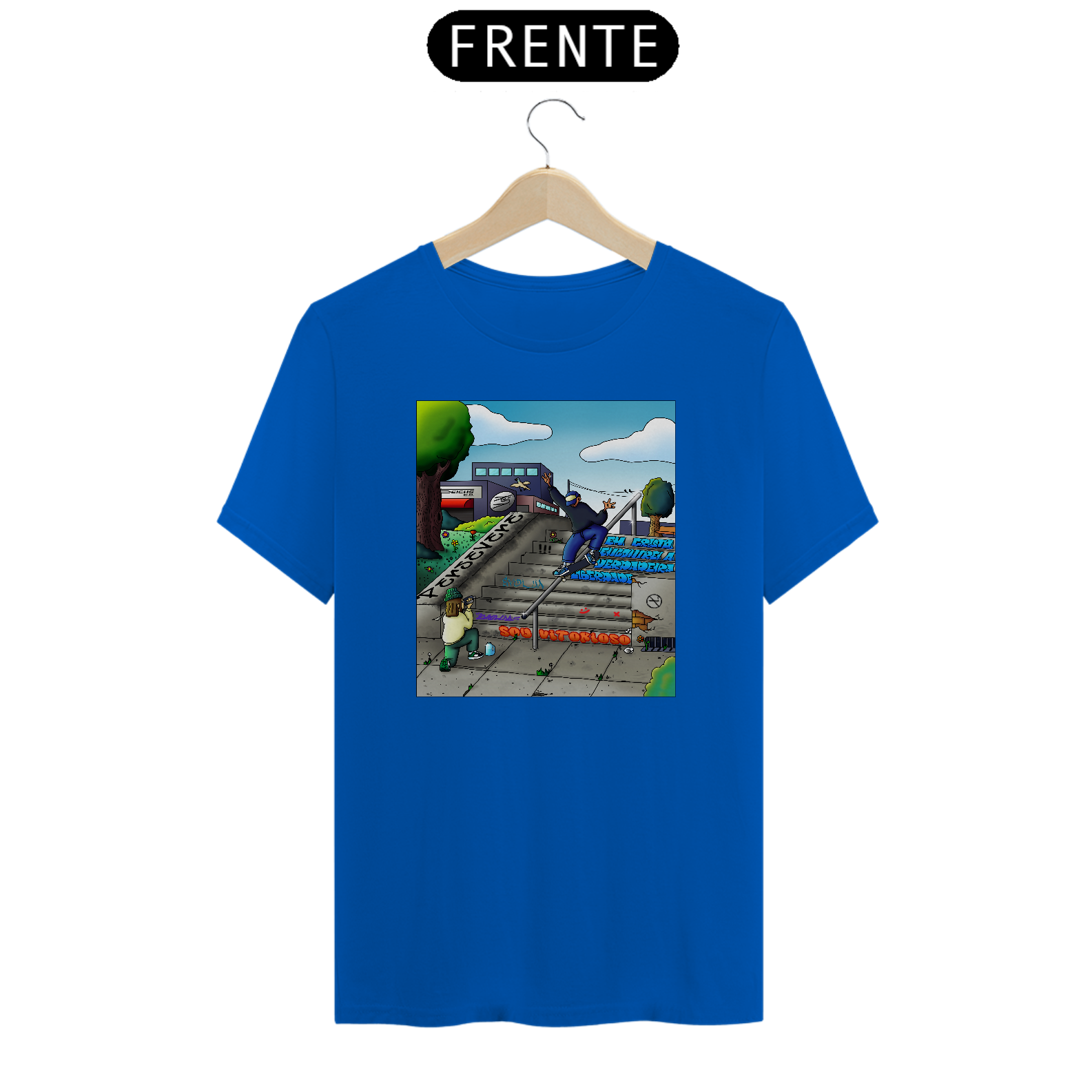 Cores do produto: Como cada tela de computador ou celular tem seu próprio jeito de mostrar cores, então a cor da sua camiseta e da estampa pode ser um pouco diferente do que você viu online.